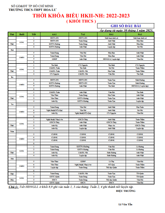 THỜI KHÓA BIỂU THCS HKI NĂM HỌC 2022 - 2023