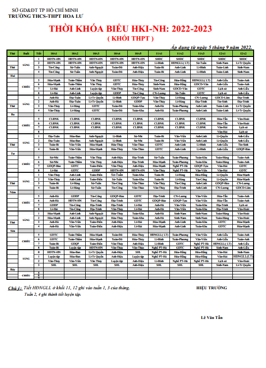 THỜI KHÓA BIỂU THPT HKI NĂM HỌC 2022 - 2023