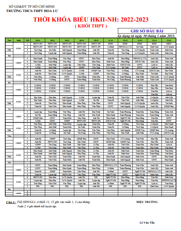 THỜI KHÓA BIỂU THPT HKII NĂM HỌC 2022 - 2023